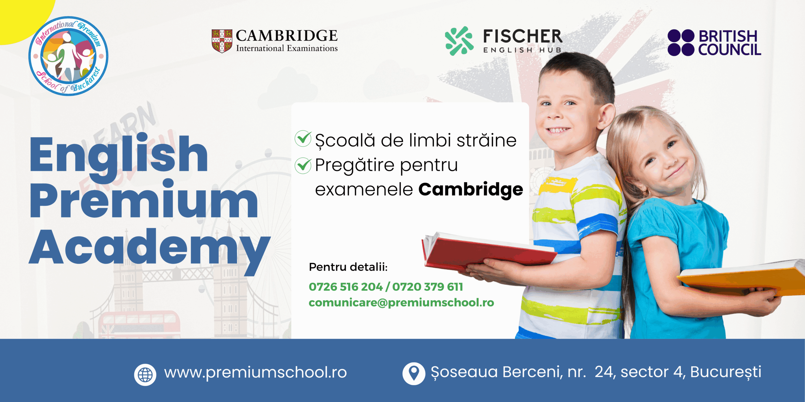 Copiii vor putea susține examenele Cambridge chiar aici, în incinta Școlii Gimnaziale International Premium School of Bucharest, unitatea de învățământ fiind centru de testare autorizat Cambridge.
